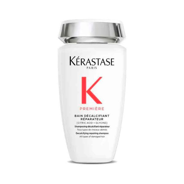 Elimina residuos y fortalece tu cabello dañado con el champú descalcificante y reparador Kérastase Première, formulado con ácido cítrico y glicina para limpiar suavemente y restaurar la salud de la fibra capilar. Ideal para cabellos dañados que necesitan una limpieza profunda sin agredir ni resecar.
