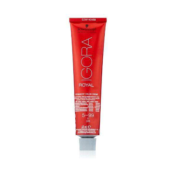 Define tu estilo con Schwarzkopf Igora Royal Tinte Permanente, Tono 5-99 - 60 ml, que colorea y cubre para un cabello con color perfecto y duradero. Ideal para quienes buscan color perfecto y duradero.