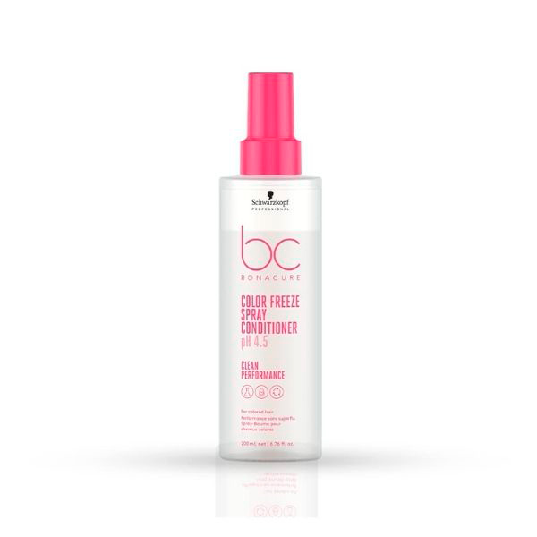 Define tu estilo con Schwarzkopf Bonacure Color Freeze Spray Acondicionador 200Ml, que hidrata y suaviza proporcionando protección del color para un cabello vibrante y protegido. Ideal para quienes buscan protección del color.