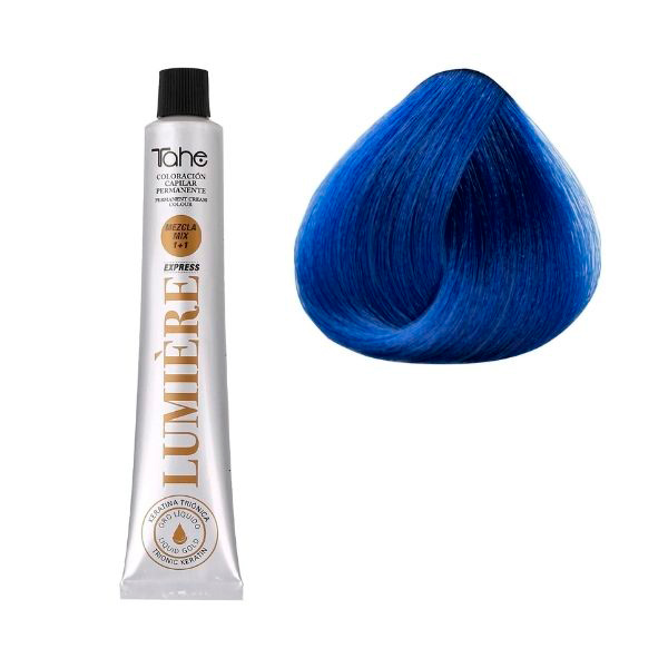 Define tu estilo con Tahe Lumiere Express Azul 100 ML - Tinte de Pelo Profesional con Cobertura 100% Canas y Tratamiento Profundo, que repara y fortalece proporcionando protección del color, cobertura perfecta de canas para un cabello vibrante y protegido. Ideal para quienes buscan protección del color.