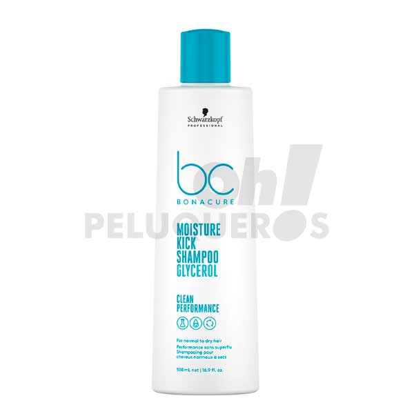 Champú hidratante de Bonacure Moisture Kick, especialmente formulado para limpiar suavemente e hidratar el cabello de normal a seco, texturizado, quebradizo o rizado. Libre de sulfatos SLS/SLES*, siliconas y colorantes artificiales. Su fórmula ayuda al cabello a retener su nivel óptimo de hidratación, para una sensación de cabello ligero que perdura hasta 48 horas con una elasticidad mejorada.