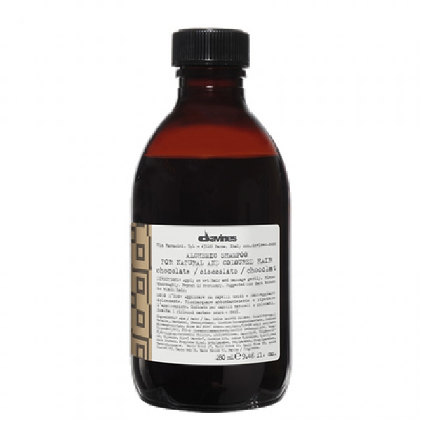 El champú alchemic chocolate permite lavar delicadamente el cabello castaño oscuro y negro,