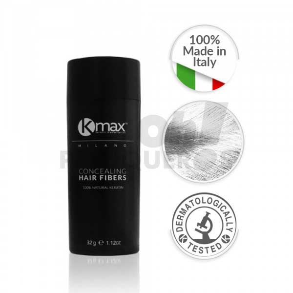 Las fibras capilares K-Max es un producto 100% natural, es el único densificador capilar que ha sido probado dermatológicamente con unos resultados que avalan su alta calidad, determinando que su uso no perjudica el cabello ni obstruye el poro. Las fibras capilares K-Max están compuestas por un 99,9% keratina y un 0,1% silicio orgánico.