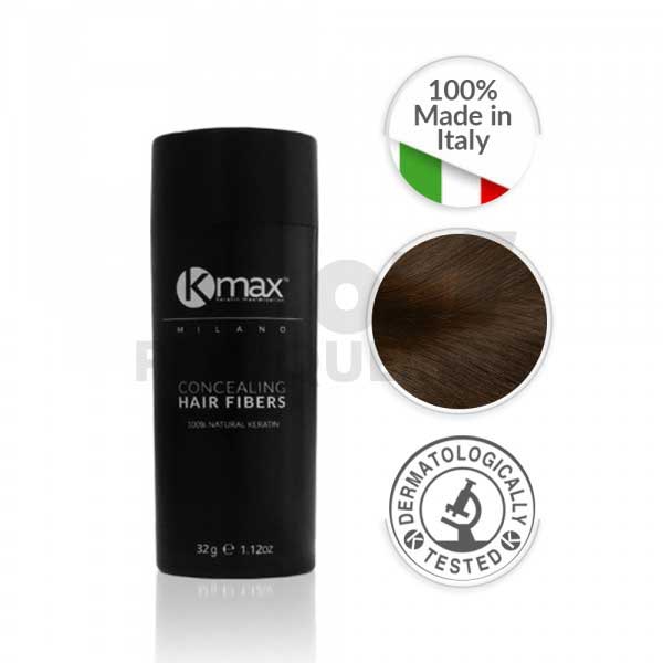 Las fibras capilares K-Max es un producto 100% natural, es el único densificador capilar que ha sido probado dermatológicamente con unos resultados que avalan su alta calidad, determinando que su uso no perjudica el cabello ni obstruye el poro. Las fibras capilares K-Max están compuestas por un 99,9% keratina y un 0,1% silicio orgánico.