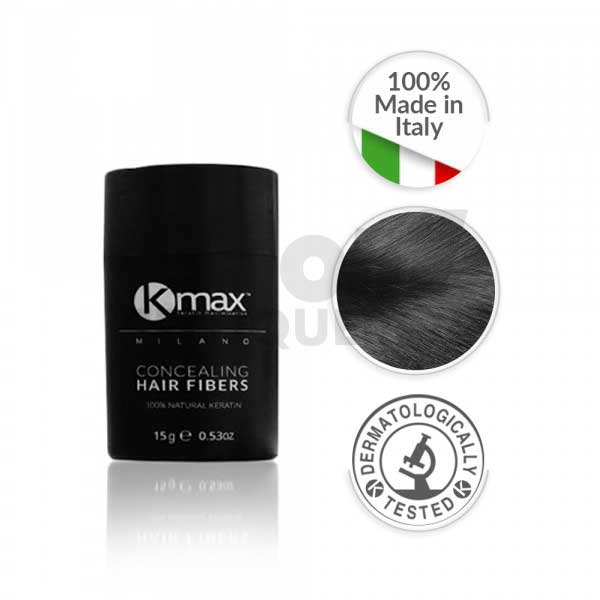 Las fibras capilares K-Max es un producto 100% natural, es el único densificador capilar que ha sido probado dermatológicamente con unos resultados que avalan su alta calidad, determinando que su uso no perjudica el cabello ni obstruye el poro. Las fibras capilares K-Max están compuestas por un 99,9% keratina y un 0,1% silicio orgánico.