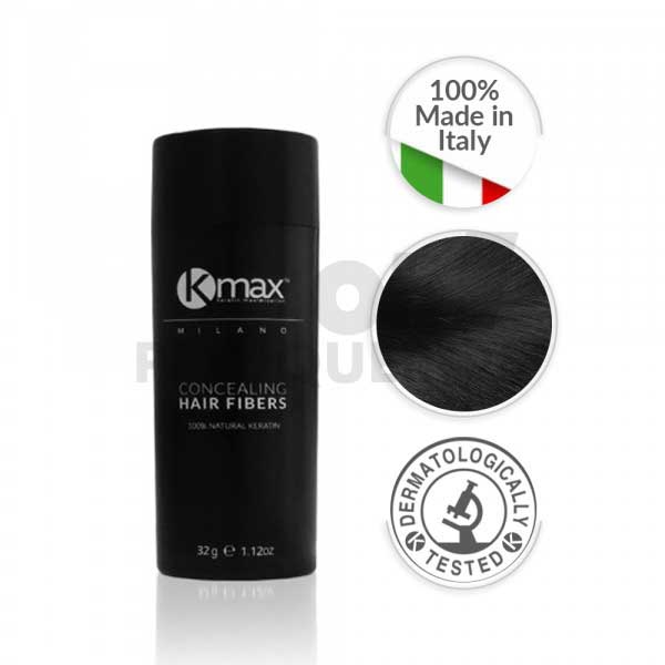 Las fibras capilares K-Max es un producto 100% natural, es el único densificador capilar que ha sido probado dermatológicamente con unos resultados que avalan su alta calidad, determinando que su uso no perjudica el cabello ni obstruye el poro. Las fibras capilares K-Max están compuestas por un 99,9% keratina y un 0,1% silicio orgánico.