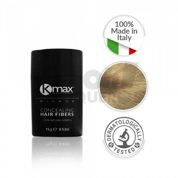 Las fibras capilares K-Max es un producto 100% natural, es el único densificador capilar que ha sido probado dermatológicamente con unos resultados que avalan su alta calidad, determinando que su uso no perjudica el cabello ni obstruye el poro. Las fibras capilares K-Max están compuestas por un 99,9% keratina y un 0,1% silicio orgánico.