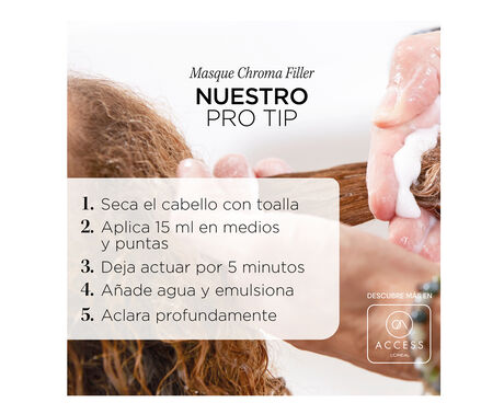 Aplicar 15ml de Masque Chroma Filler sobre los largos del cabello secado con toalla.