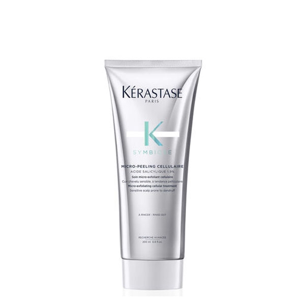El Micro-Peeling Cellulaire de la gama Symbiose de Kérastase es un tratamiento microexfoliante celular destinado a los cueros cabelludos sensibles y propensos a la caspa. Su fórmula purificadora en forma de gel transparente con semillas de argán y albaricoque, que está enriquecida con un 1,9 % de ácido salicÃlico, exfolia al instante las células muertas y elimina la caspa a nivel biológico y visual. Deja el cuero cabelludo calmado y purificado sin dañarlo. La composición de este micropeeling es óptima para potenciar los efectos anticaspa de la gama Symbiose.
