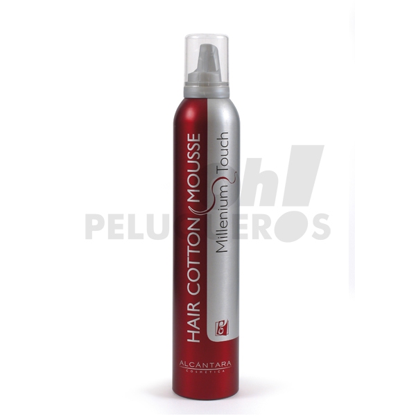 MILLENIUM TOUCH Hair Cotton Mousse. Espuma de peinado con extracto de algodón. Especialmente indicada para controlar y manejar el diseño del cabello. Enriquecida con proteínas de algodón, protege la fibra capilar durante el proceso de brushing, proporcionando cuerpo, fijación y brillo al peinado.