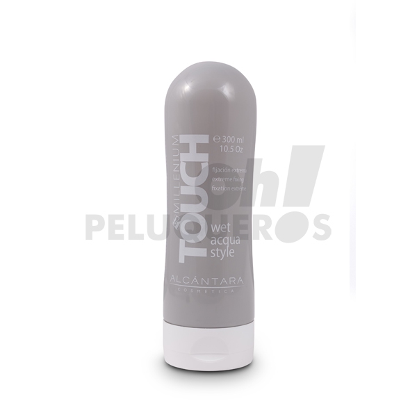 MILLENIUM TOUCH Wet Acqua Style. Gel de fijación extrema para crear formas estructuradas y efectos esculpidos en todo tipo de cabello. Facilita el peinado de looks atrevidos y sofisticados, modelando todos los estilos posibles con un control perfecto de la forma. Contiene siliconas que proporcionan un brillo extremo de máxima duración y resinas fijadoras resistentes a la humedad.