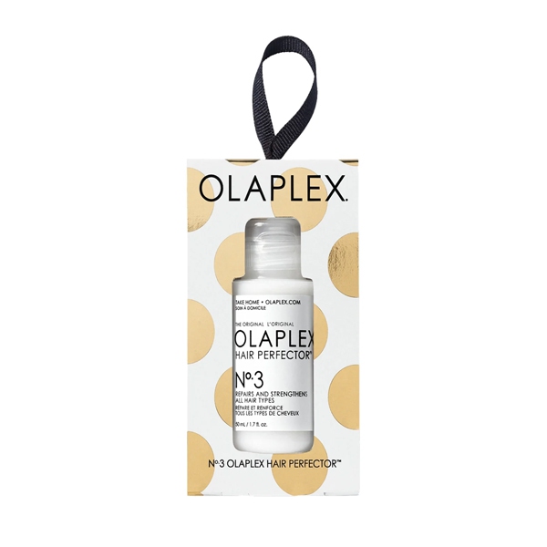 Regala un cabello más fuerte, en una caja adorno de Navidad de edición especial. Nº.3 Hair Perfector es un concentrado para aplicar antes del champú que repara el cabello dañado y reduce la rotura para que el cabello tenga un aspecto más fuerte y sano en tan solo 3 minutos y con un solo uso.