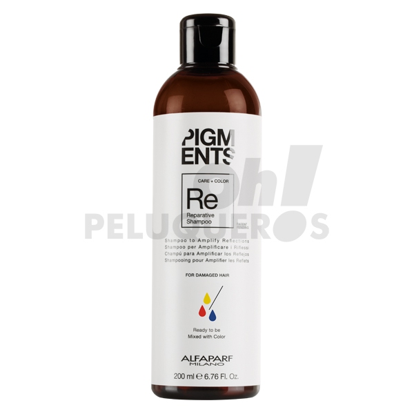 Reparative Shampoo de la línea Pigments limpia y potencia la acción de los pigmentos puros. Ideal para el cabello dañado.