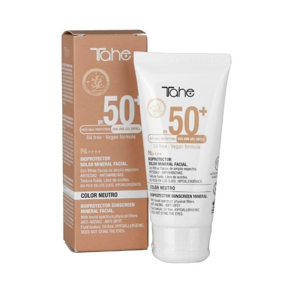 Define tu estilo con Tahe Bioprotector solar mineral facial neutro (sin color) 0% filtros químicos y conservantes, FPS 50+, 50 ml, que colorea y transforma proporcionando protección del color, protección térmica para un cabello vibrante y protegido. Ideal para quienes buscan protección del color.