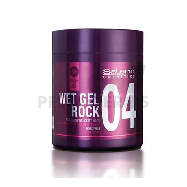 Salerm Pro Line Wet Gel Rock 500 ml. Wet Gel Rock es un gel de peinado flexible, resistente y con efecto memoria. Tiene propiedades energizantes y antioxidantes de la cafeína. Es de secado rápido y con efecto mojado. No deja residuos. Modo de empleo: Aplicar WET GEL ROCK sobre cabello húmedo y peinar dando la forma deseada.