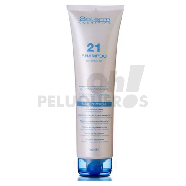 Salerm 21 Champú es un champú acondicionador ideal para cabellos secos y dañados que necesitan un extra de cuidado. Su fórmula repara en profundidad el cabello a la vez que lo lava con suavidad, respetando las caracterÃsticas naturales del cuero cabelludo. Salerm 21 Champú nutre, revitaliza y redensifica el cabello consiguiendo más suavidad, fuerza y reparación. Con proteÃnas de seda, vitamina E y Pantenol.
