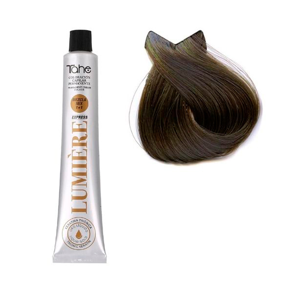 Consigue un rubio medio con matices ceniza dorados naturales y un acabado brillante con Tahe Lumiere Express nº 7.13, una coloración rápida y eficaz que ofrece resultados profesionales y duraderos. Ideal para quienes desean un tono equilibrado y luminoso que realza la belleza del cabello.