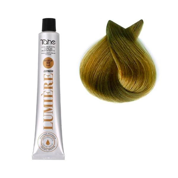 Define tu estilo con Tahe Lumiere Express nº 8.31 100 ml - Rubio Claro Dorado Ceniza, que colorea y cubre proporcionando protección del color, cuidado específico para cabello rubio para un cabello vibrante y protegido. Ideal para quienes buscan protección del color.