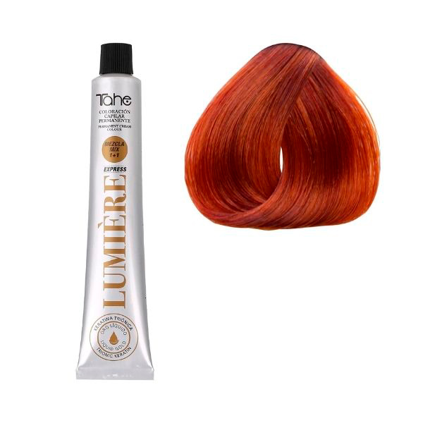 Logra un color cobre intenso con cobertura total de canas gracias al tinte profesional Tahe Lumiere Express Cobre, que además ofrece un tratamiento profundo para proteger y fortalecer la fibra capilar durante la coloración. Ideal para quienes buscan un tono vibrante y duradero con cuidado avanzado.
